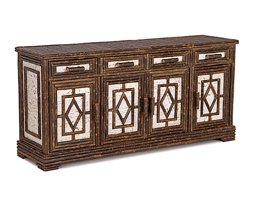This finely crafted buffet features a striking background of White Birch, accented with contrasting willow trim in a Natural finish on bark.